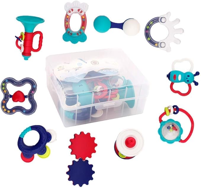 HANMUN Baby Rattles Teether Toys, Infant Shaking Bell Rattle Set with ...